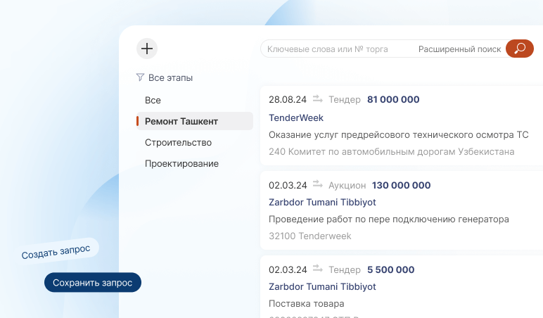 Сервис покажет ТОП площадок, заказчиков, конкурентов. А еще готовый отчет «Воронка участий» поможет оценить эффективность сотрудников в режиме онлайн