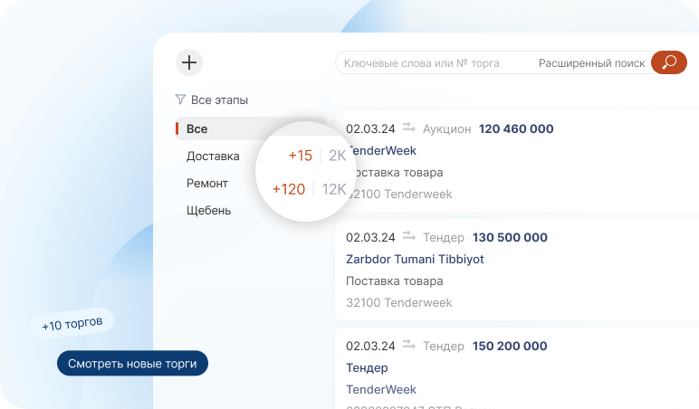 Сервис покажет ТОП площадок, заказчиков, конкурентов. А еще готовый отчет «Воронка участий» поможет оценить эффективность сотрудников в режиме онлайн